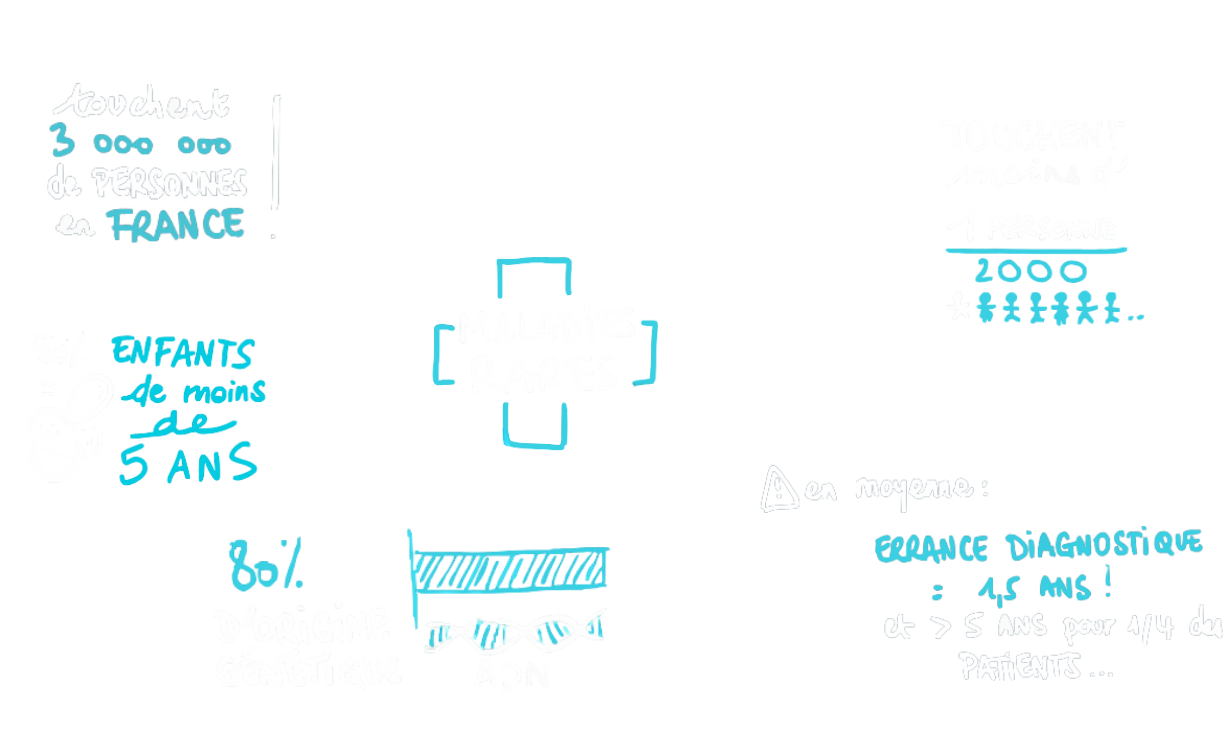 Le diagnostic d’une maladie rare est souvent long à établir. Pour plus d’un quart des personnes concernées, il faut en moyenne cinq ans pour obtenir un diagnostic précis. Aujourd’hui, seulement la moitié des patients atteints de maladies rares bénéficient d’un diagnostic clair, ce qu’on appelle « l’errance diagnostique ».